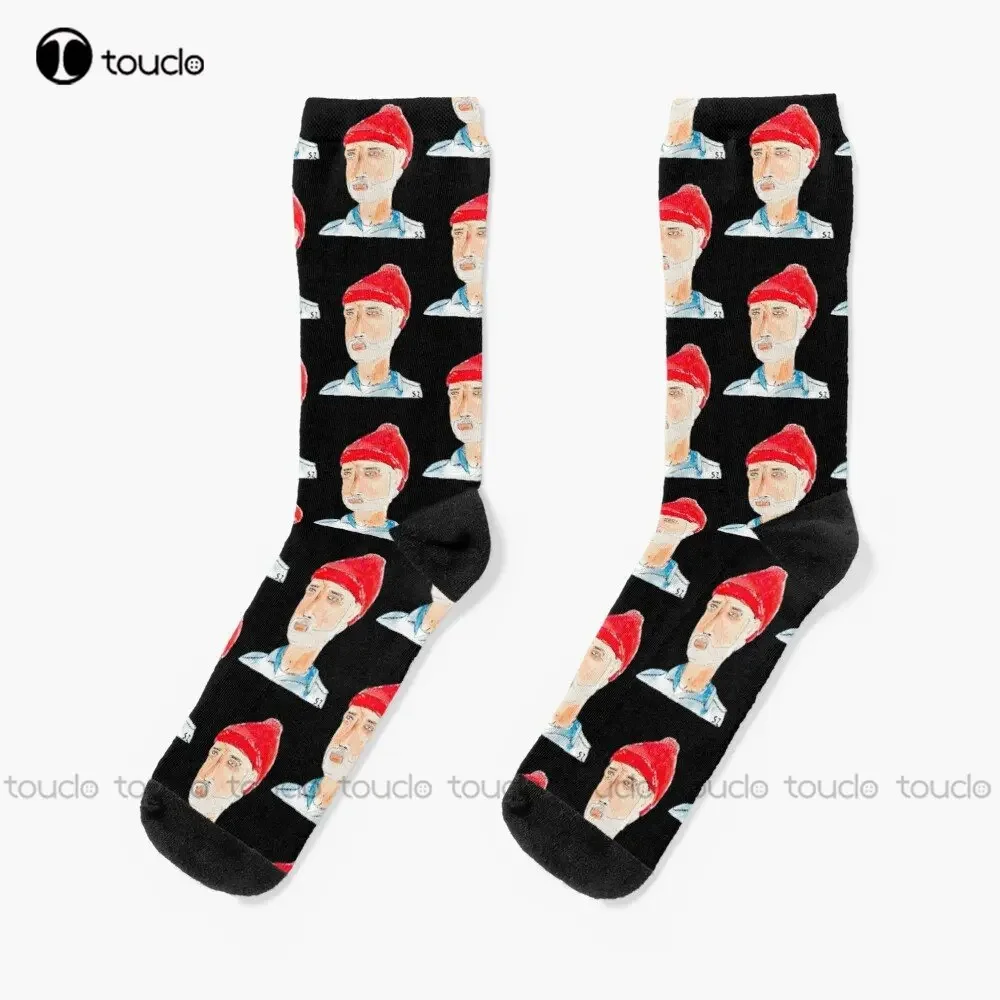 Captain Zissou Steve Zissou Life Aquatic Movie Wes Anderson Bill Murray Socks Men'S Socks Creative Funny Socks Custom Gift Art
