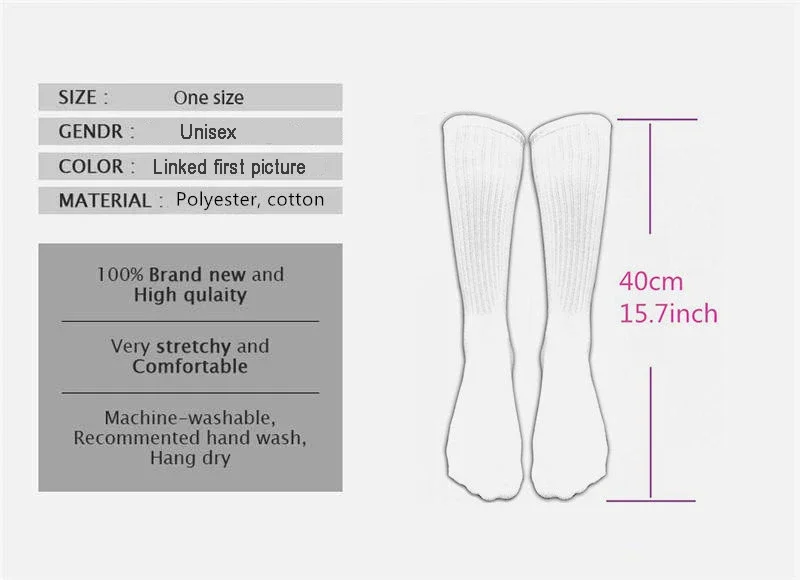 Key point: Our socks are the latest technology, using360° digital printing, which can make the picture complete, without seams on both sides, more beautiful, so more expensive, but you deserve it.