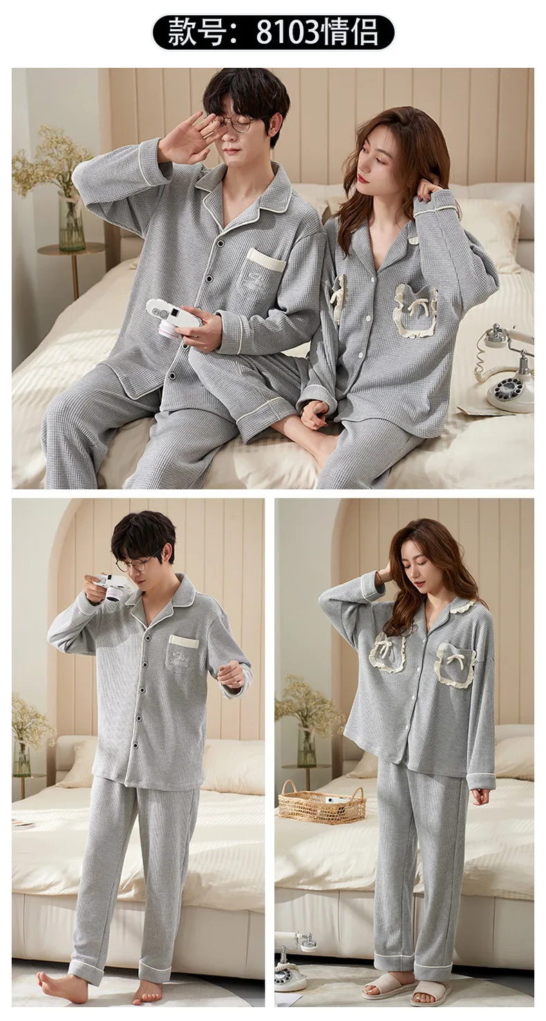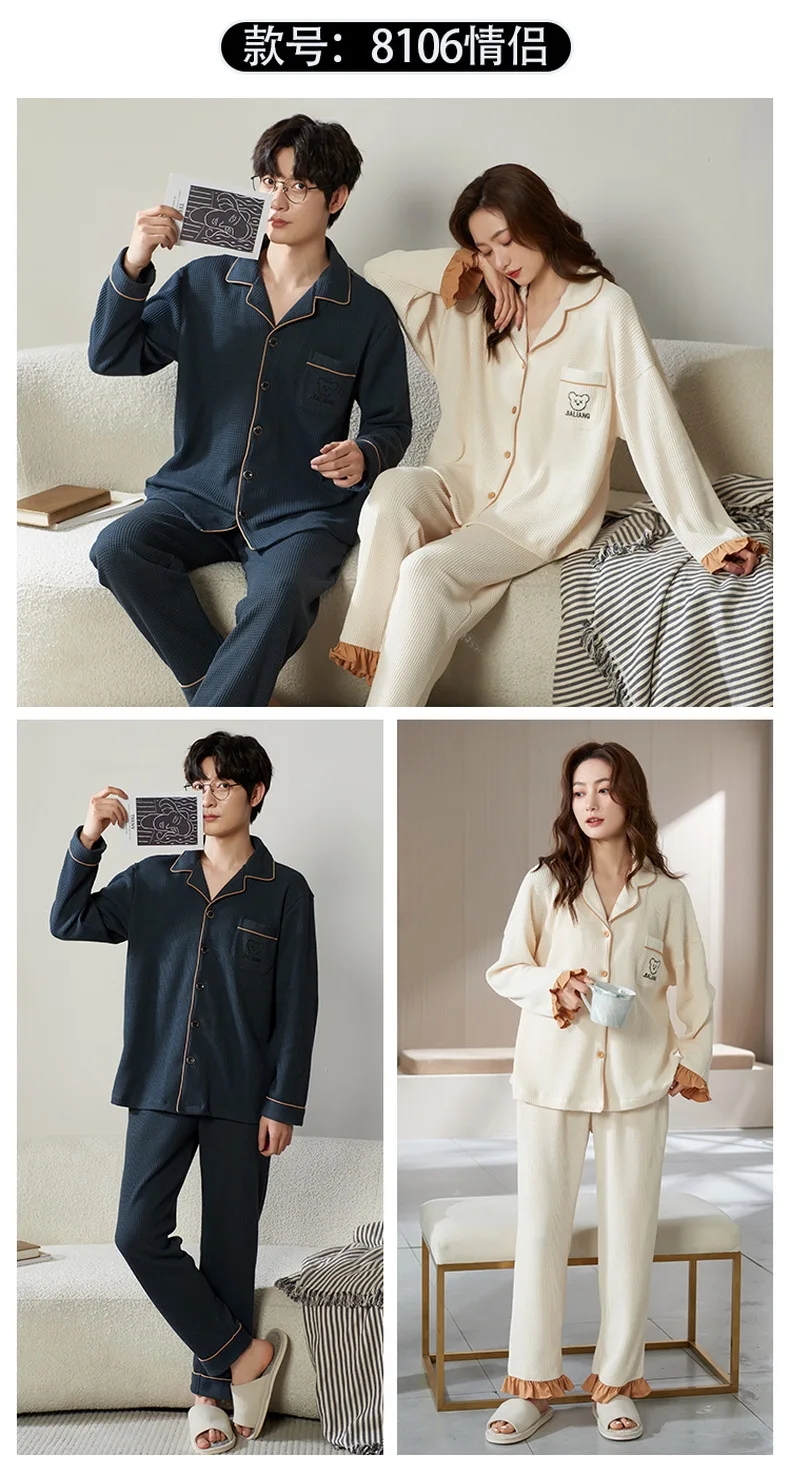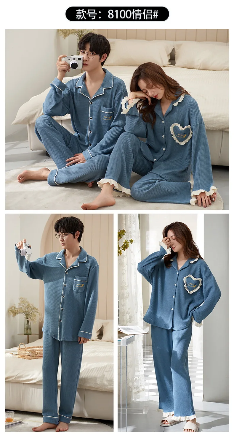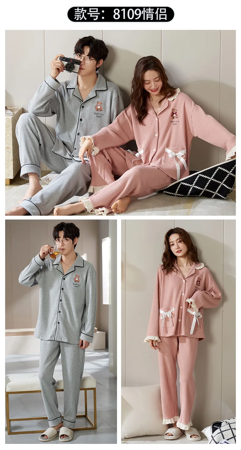 Ensemble Pyjama Coton Cardigan Coréen Couples Homme Femme