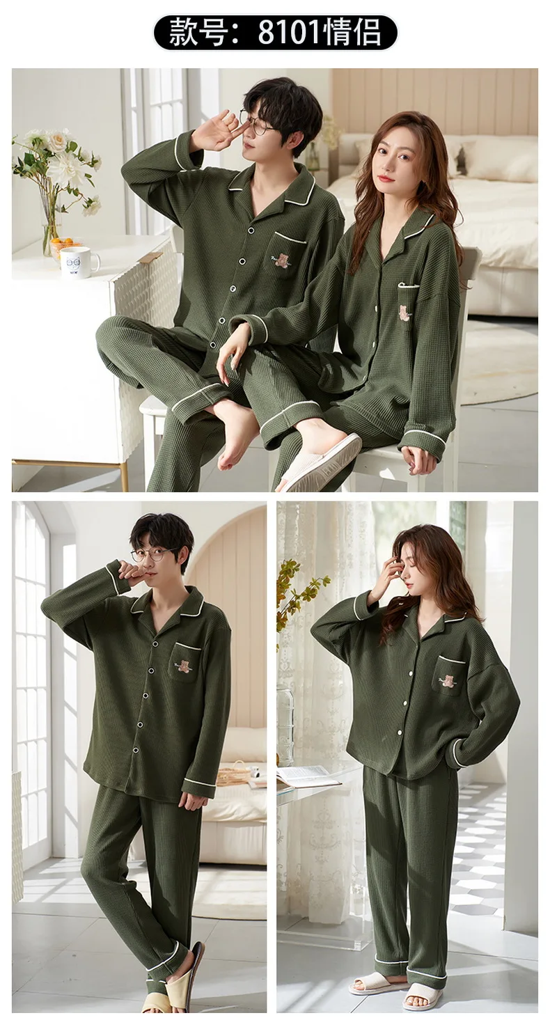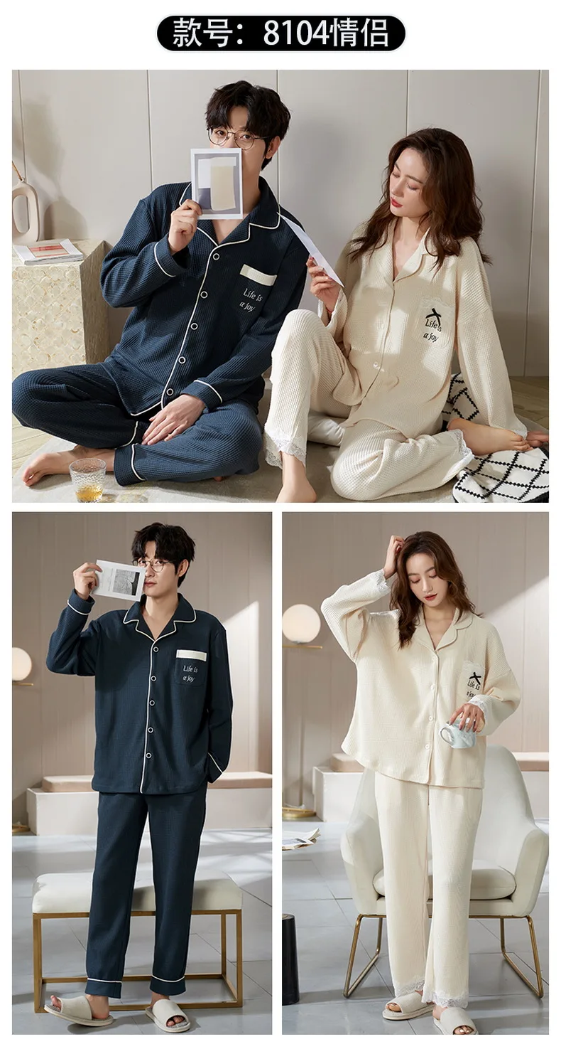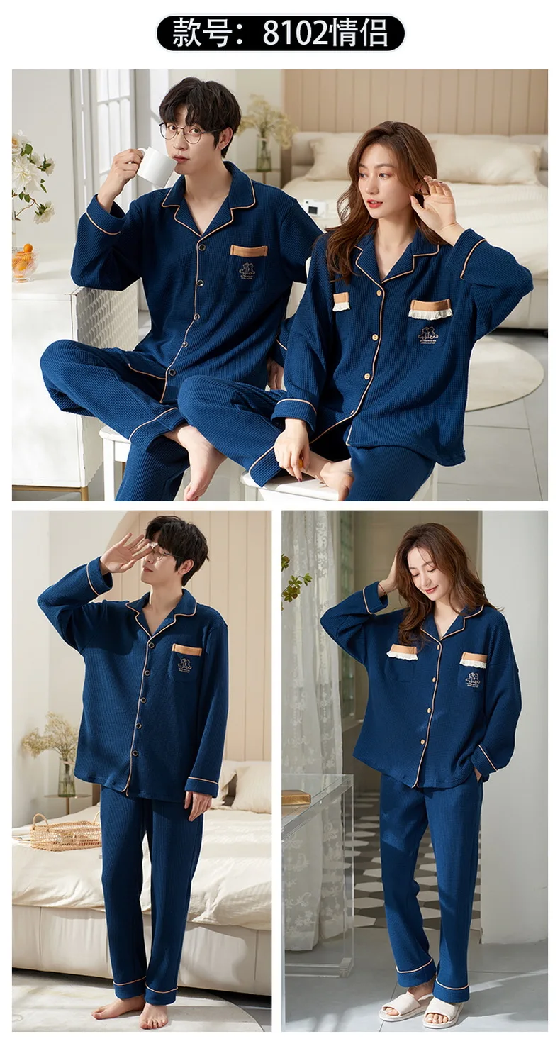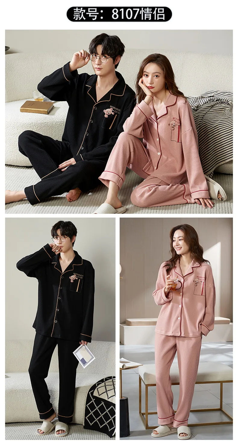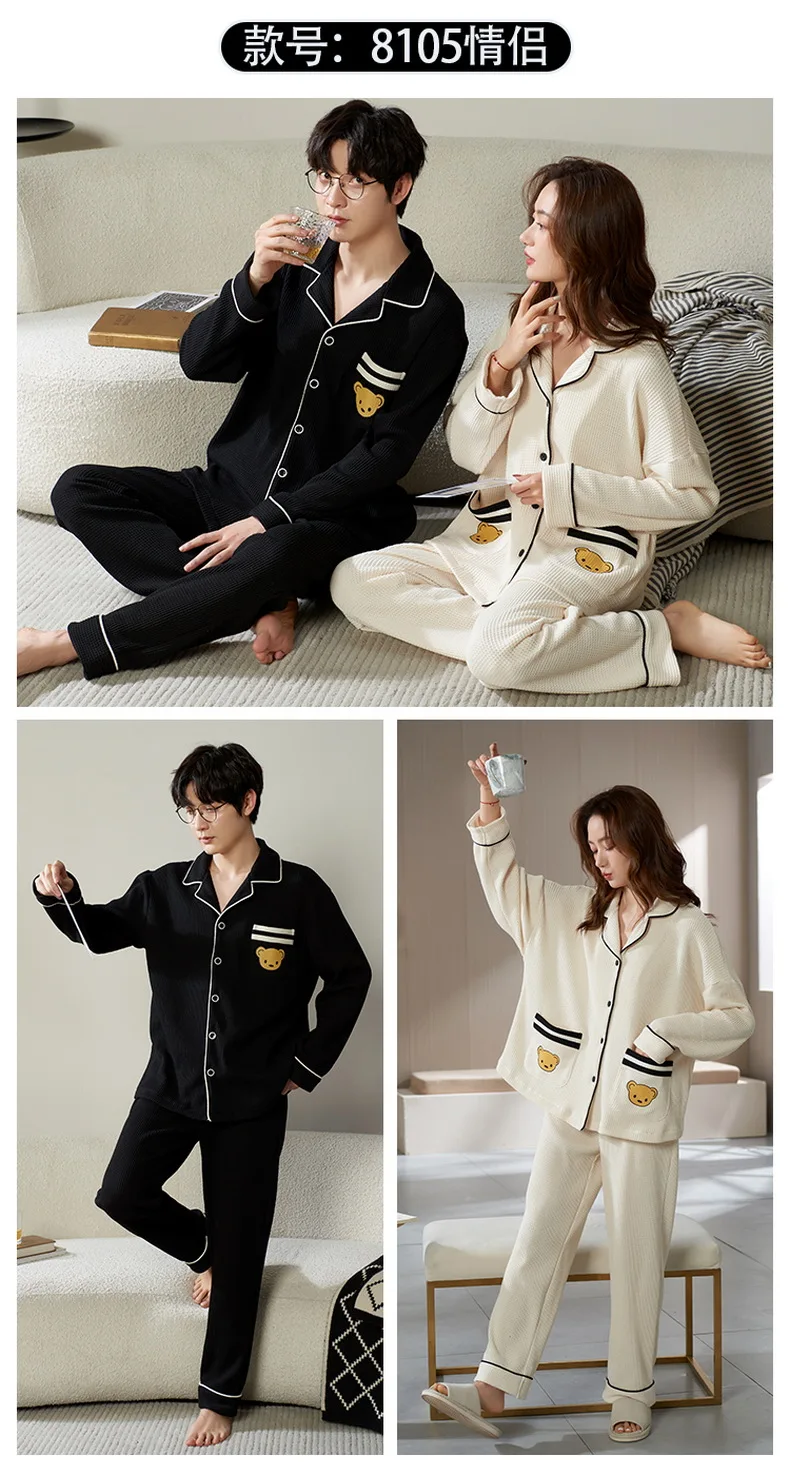 Ensemble Pyjama Coton Cardigan Coréen Couples Homme Femme