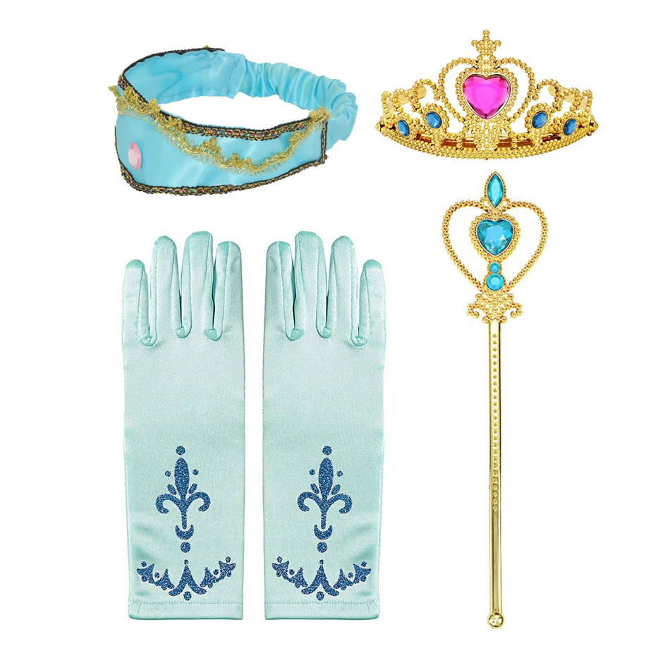 Girls Princess Dress Accessories Gloves Wand Crown Jewelry Set Princess Wig Braid Princess Dress Costume Cosplay Accessories