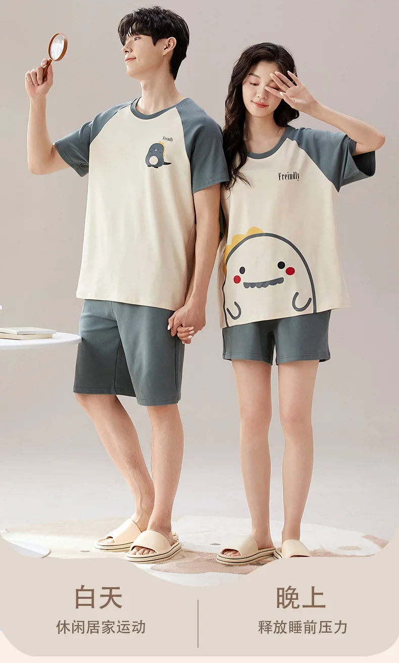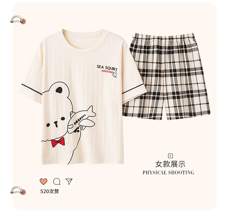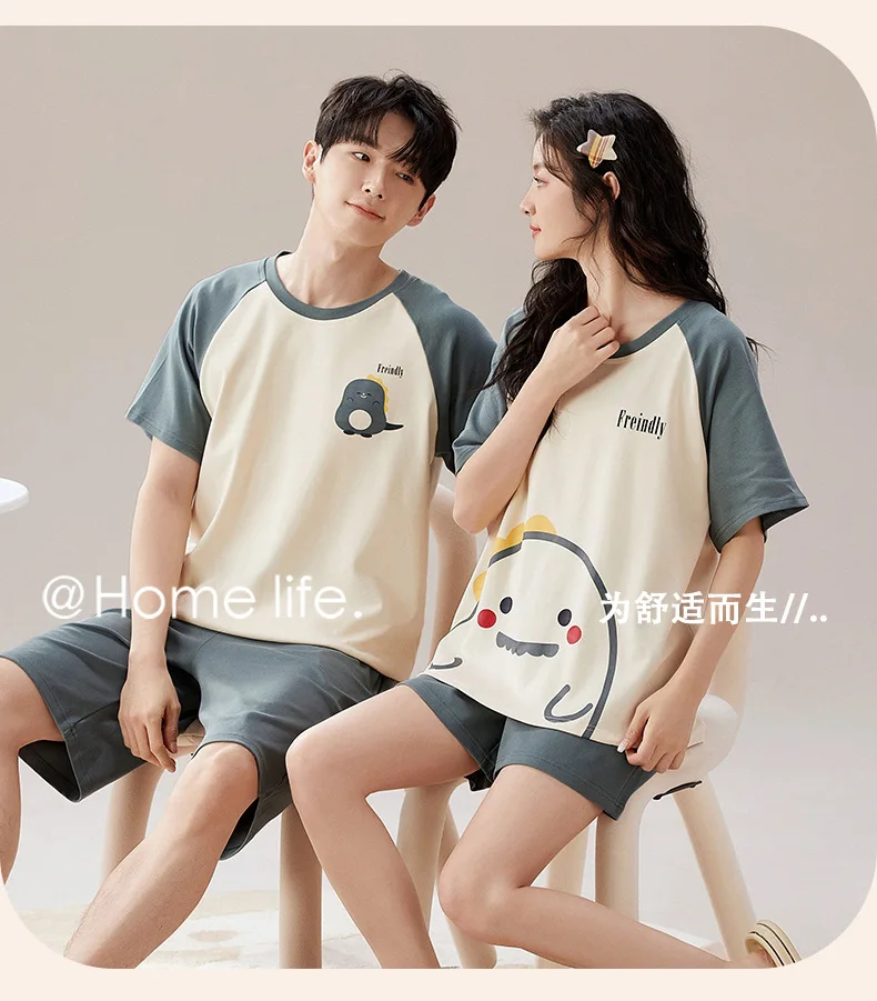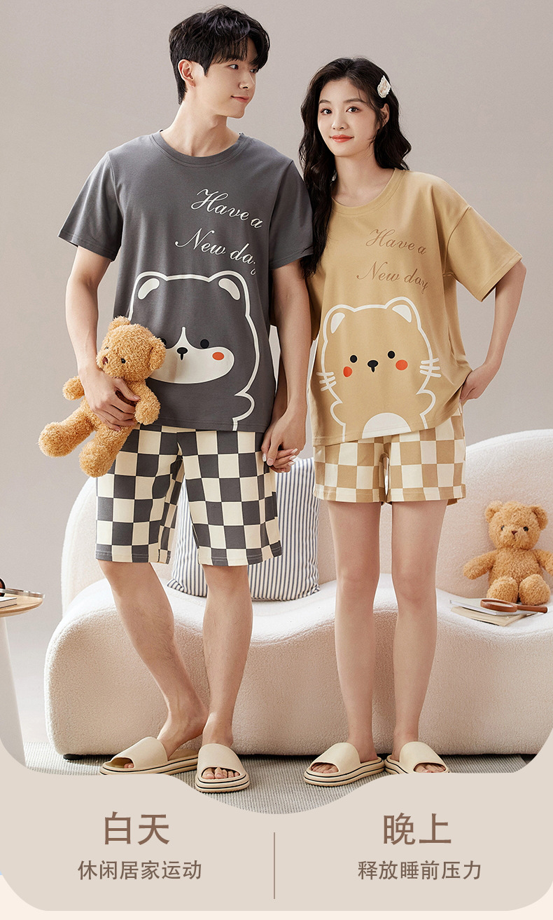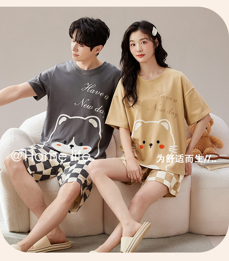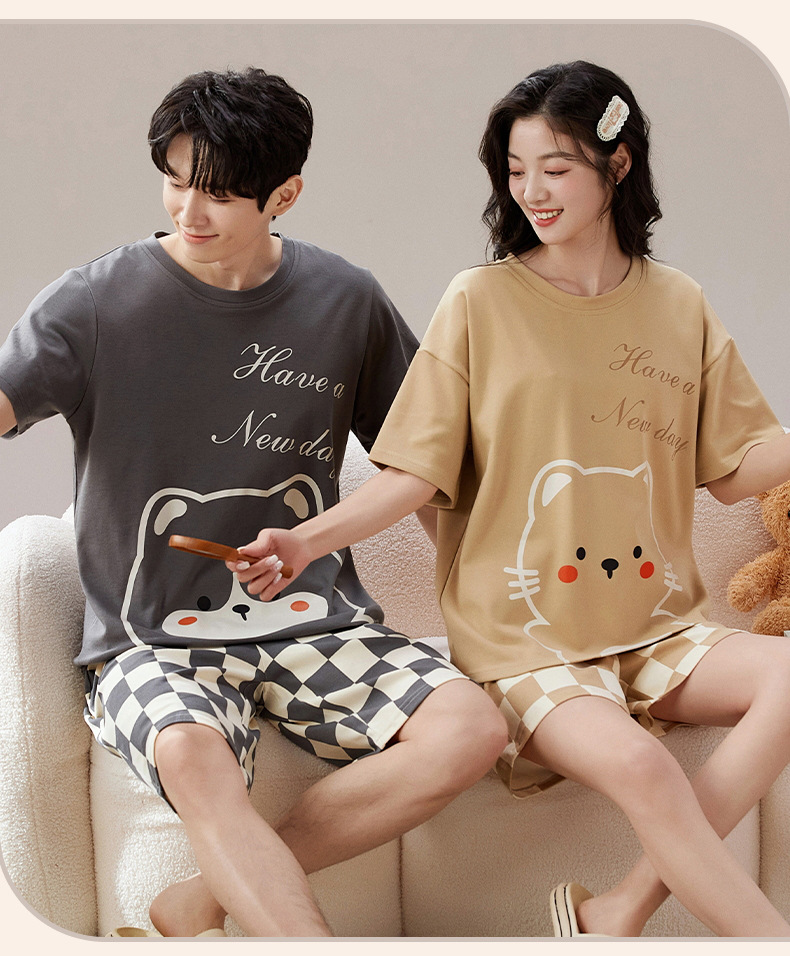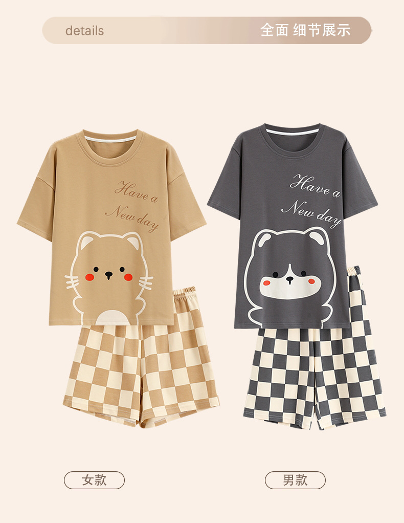 Pyjama Couple Été Coton Chat Dessin Animé Ensemble Nuit