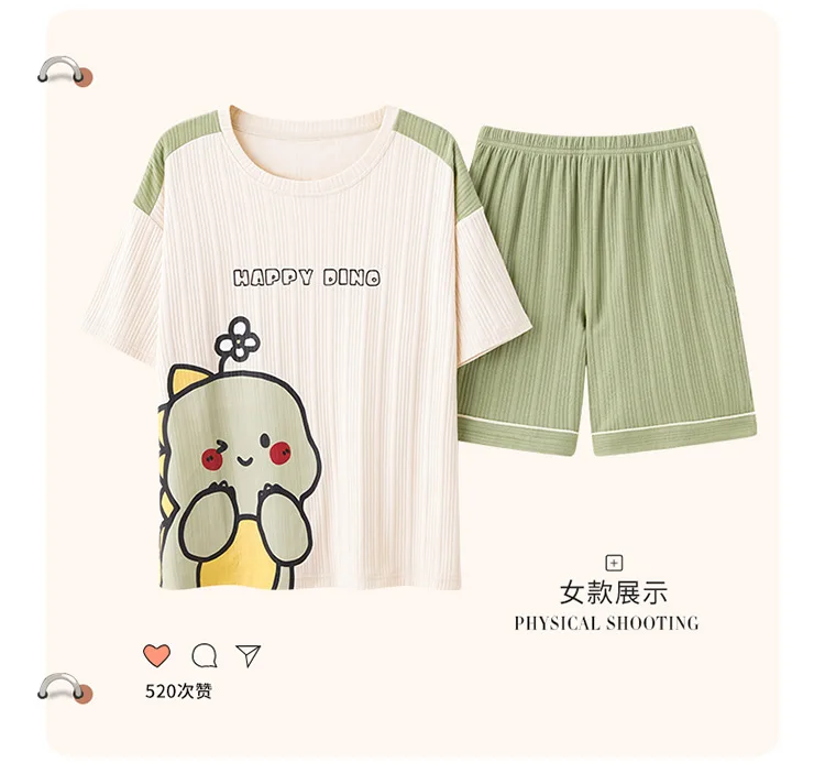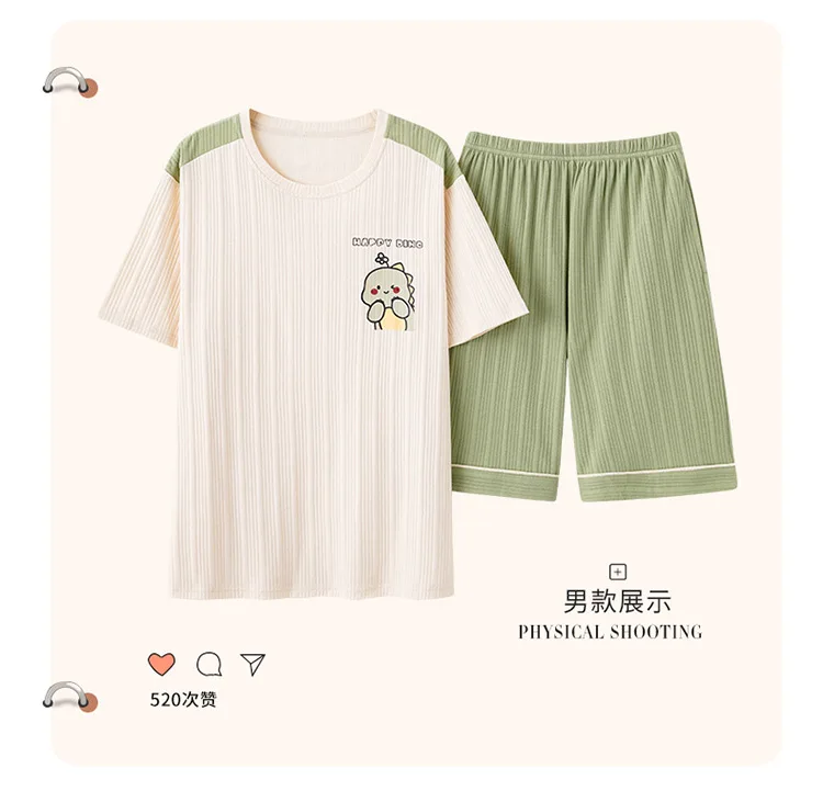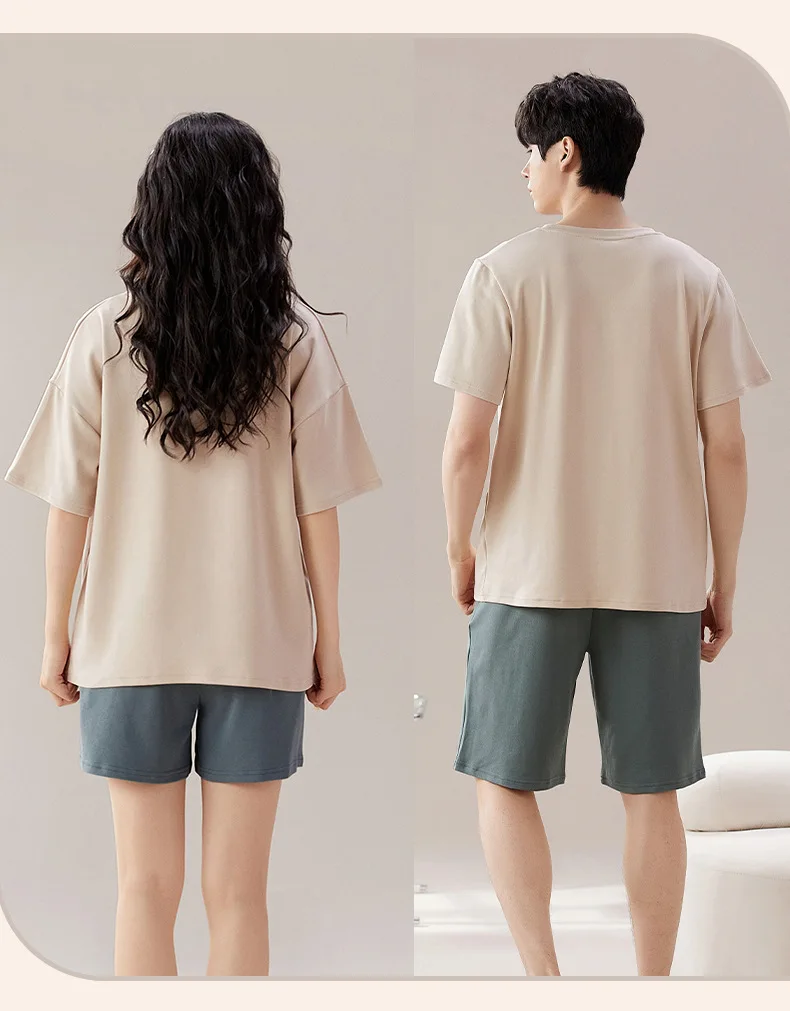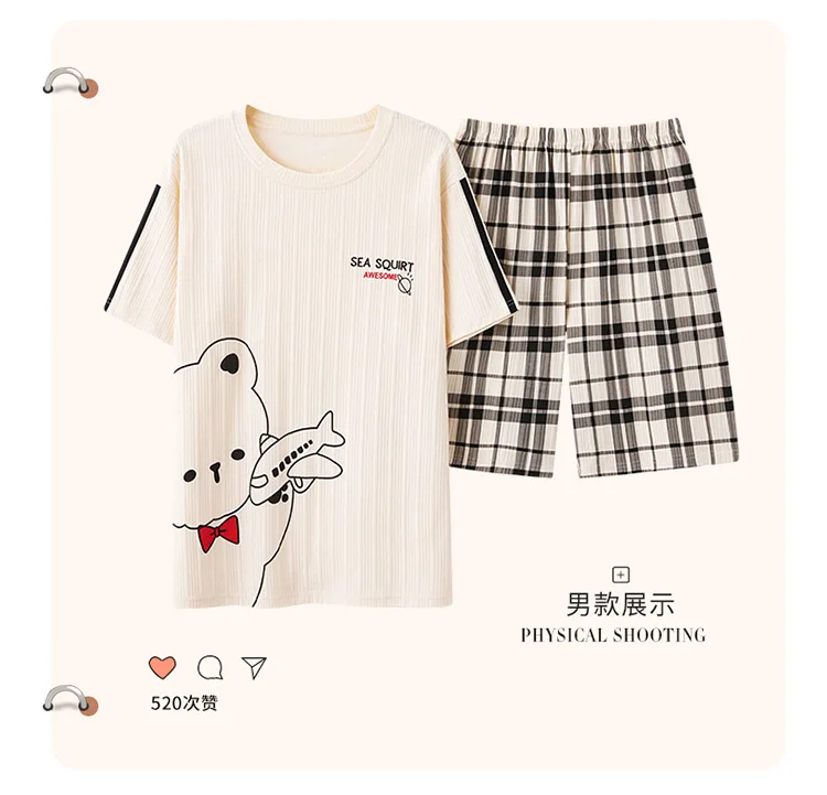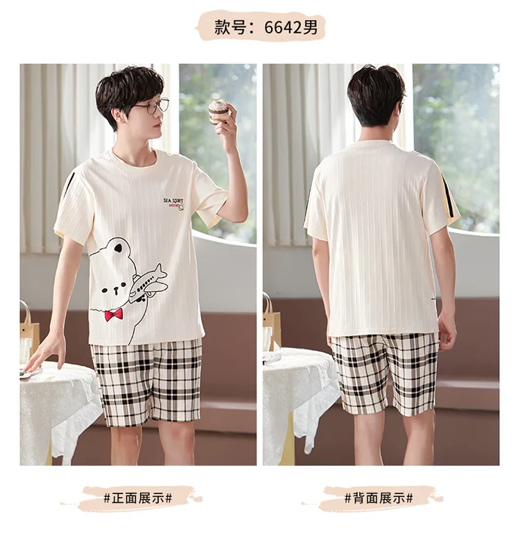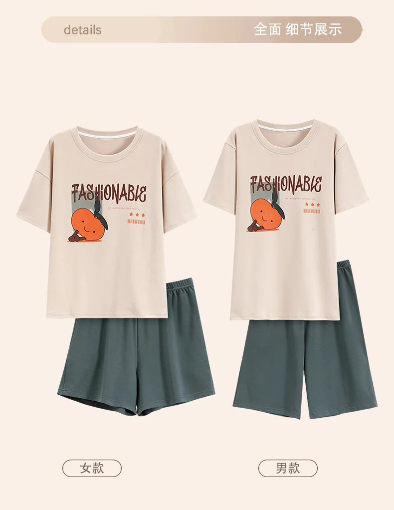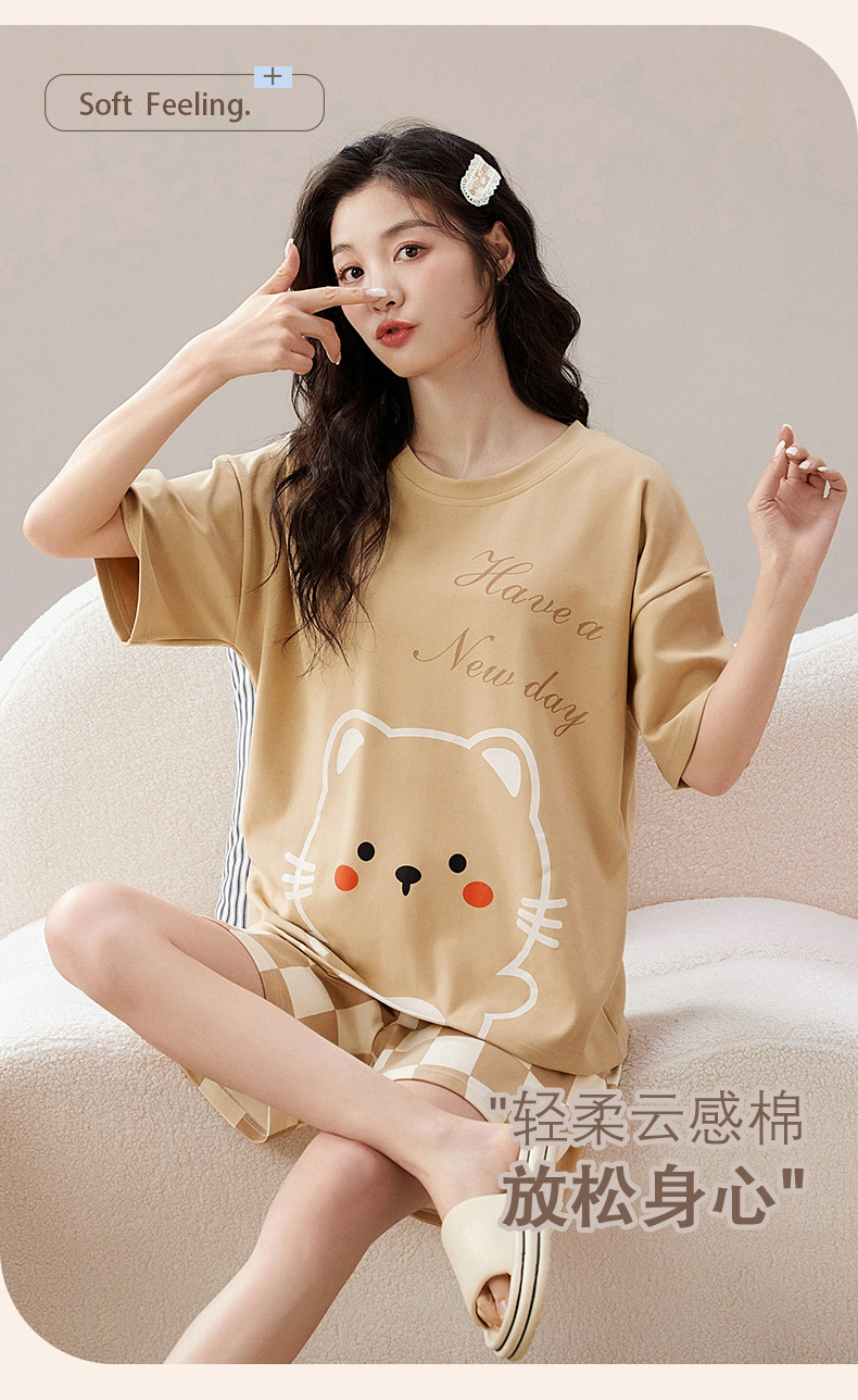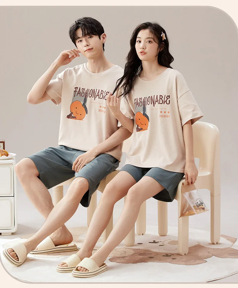 Pyjama Couple Été Coton Chat Dessin Animé Ensemble Nuit