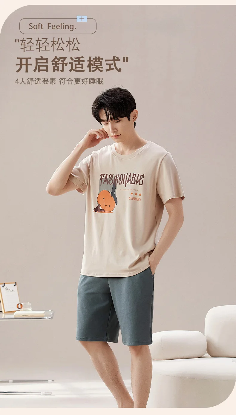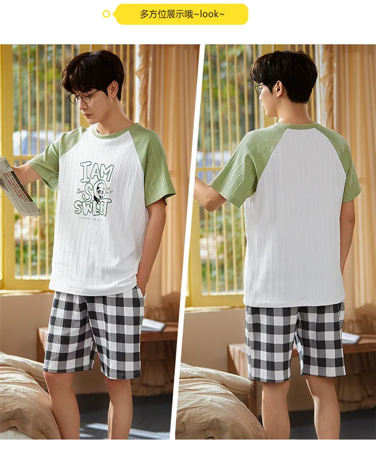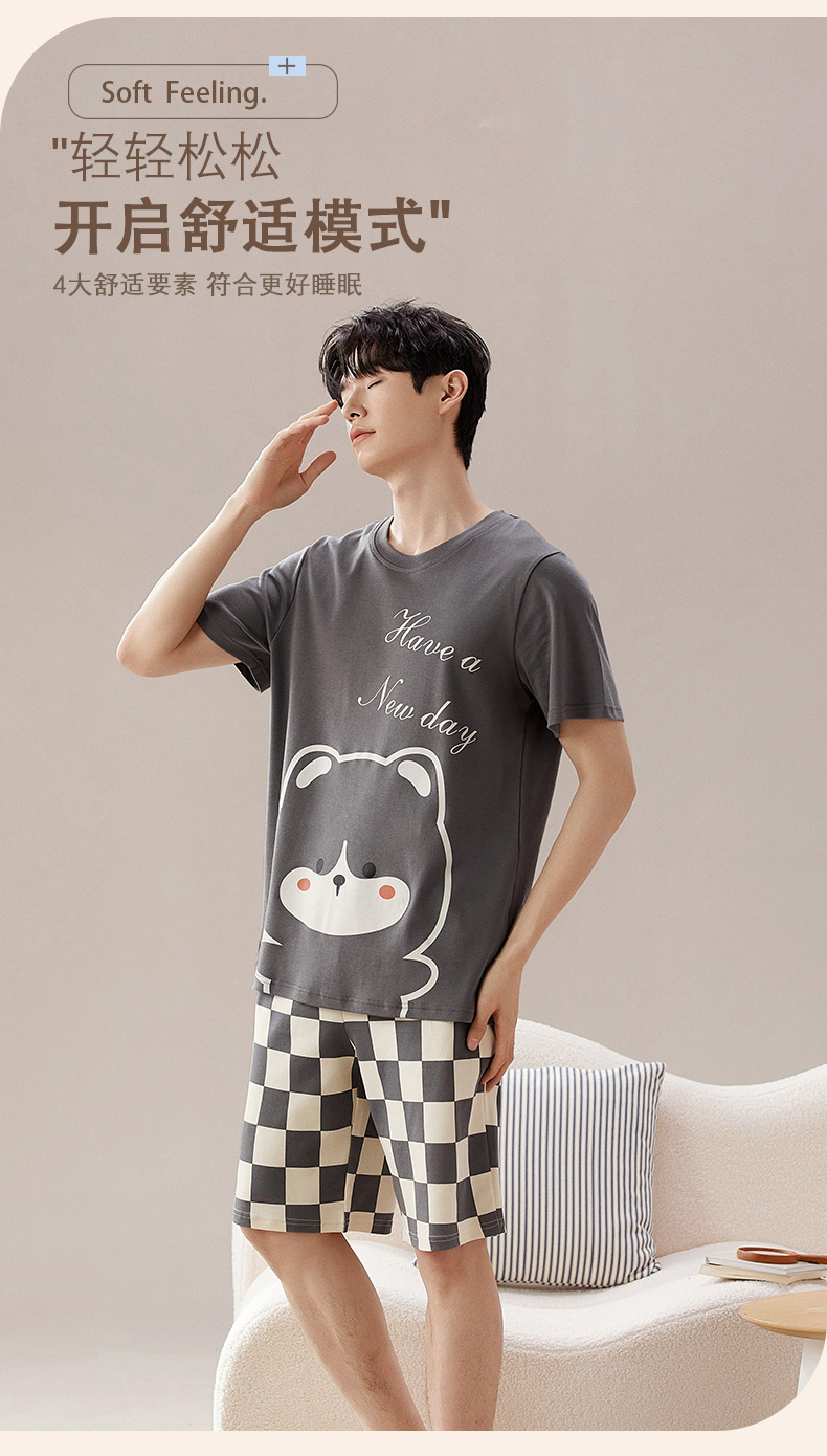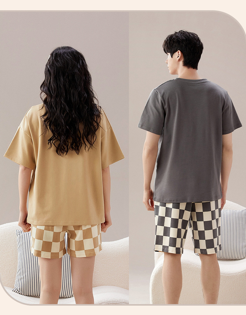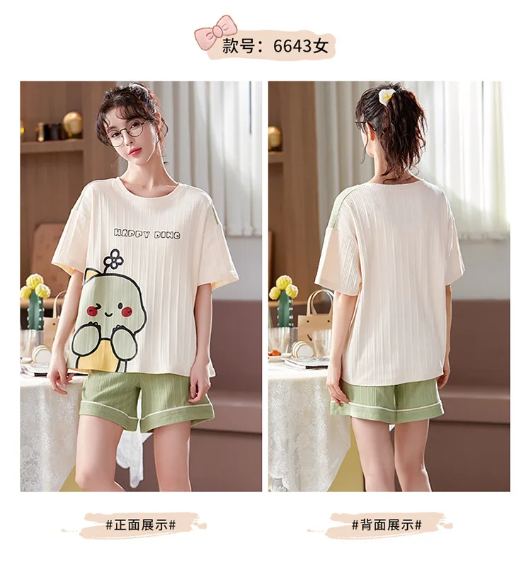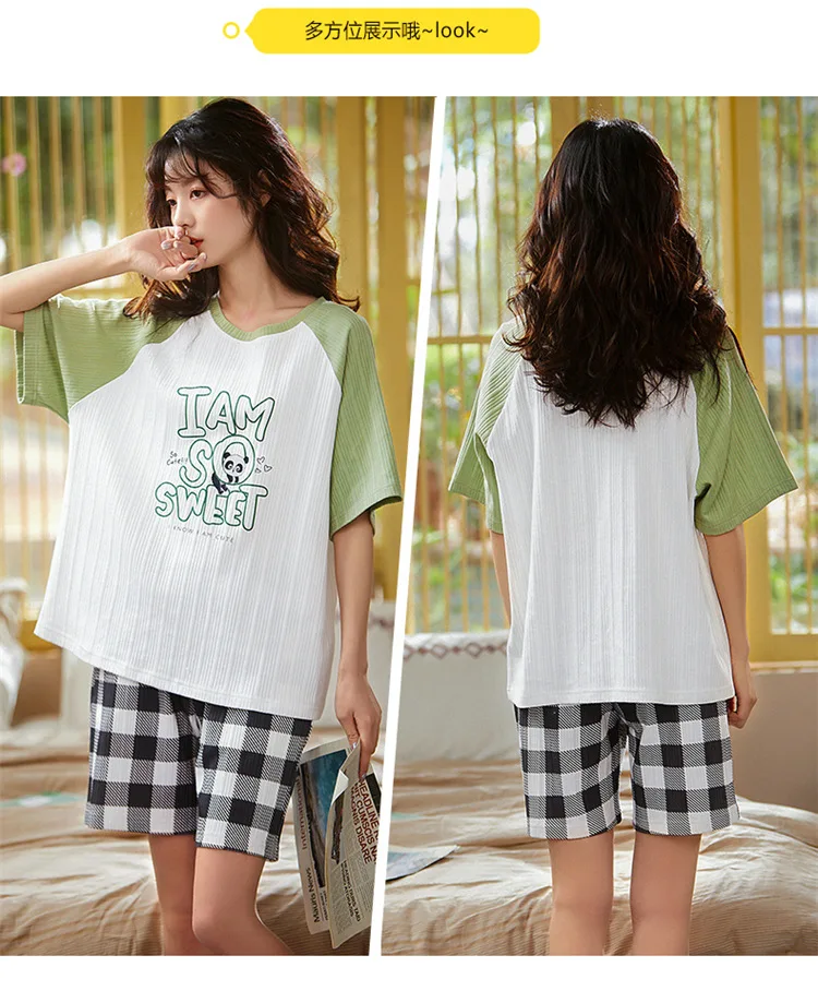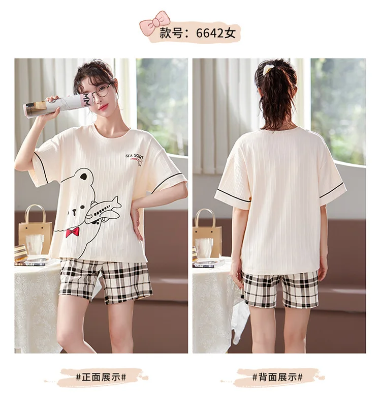 Pyjama Couple Été Coton Chat Dessin Animé Ensemble Nuit