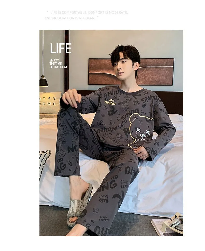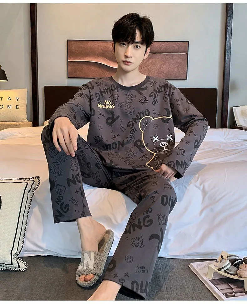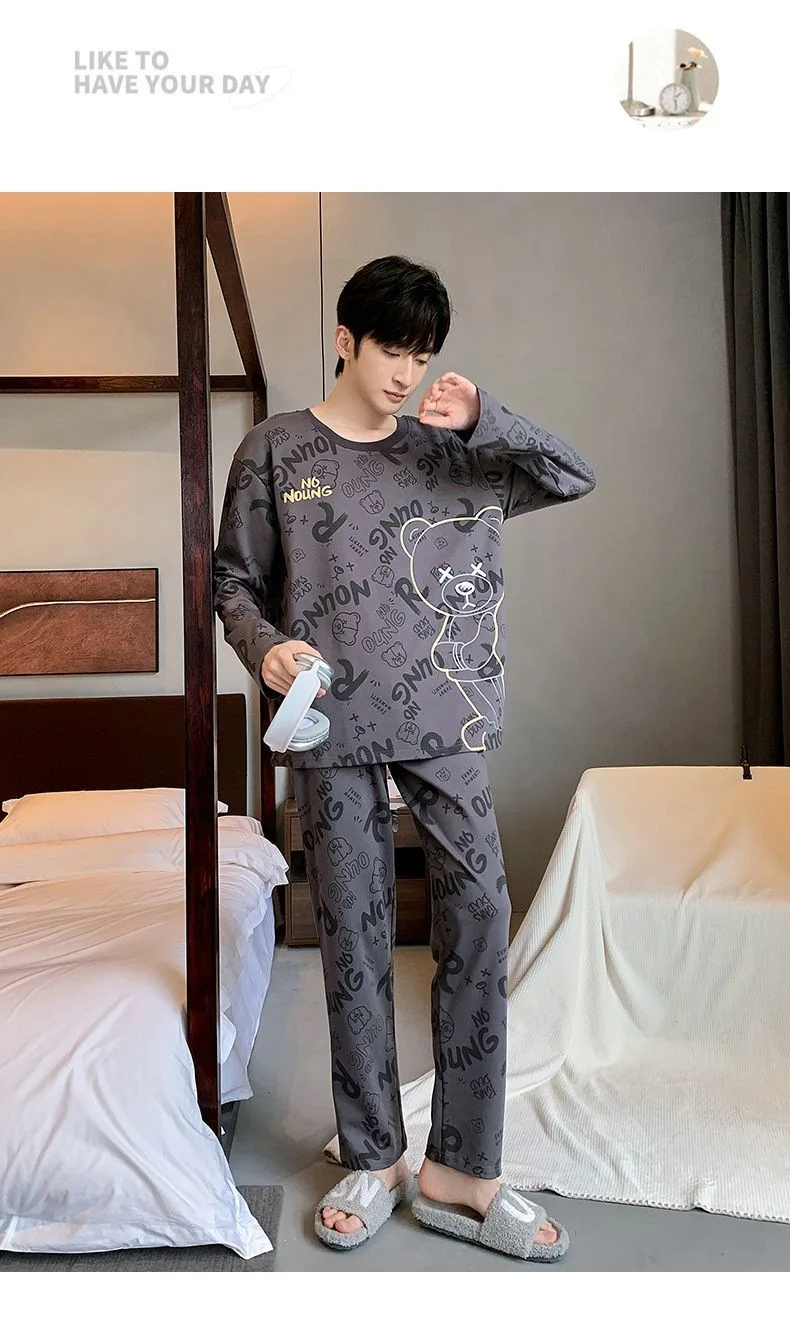 Pyjama Deux Pièces Hiver Femme Homme Manches Longues Dessin Animé Ours Grande Taille