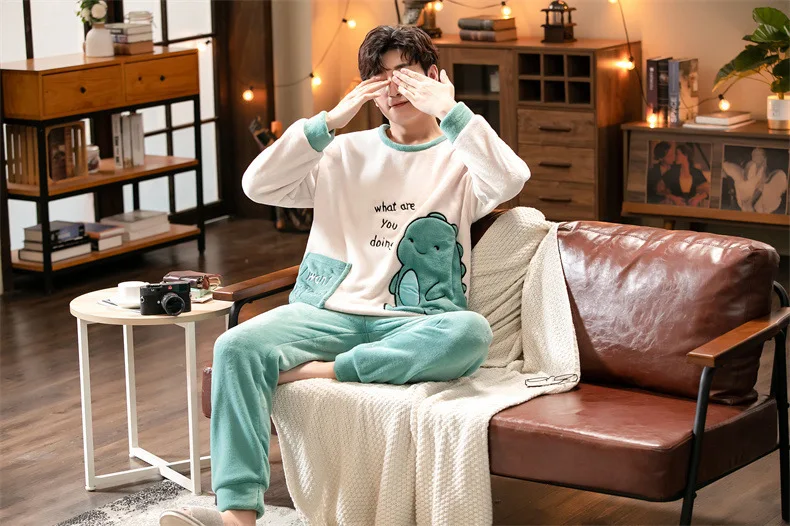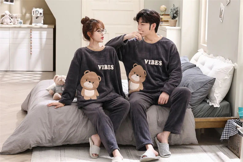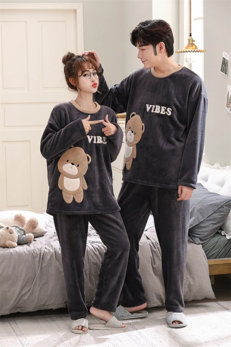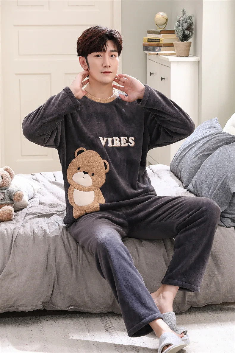 Pyjama Flanelle Homme Épais Hiver Ours Dessin Animé